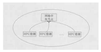 如图 1所示, 由网格中央节点汇总管理各个加入的高性能计算机系统, 并与之交互, 负责资源、作业、用户和信息的管理。