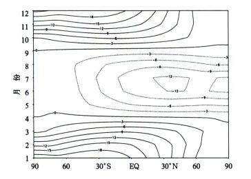 | 图 2. 全球平均地面气温的季节变化 Fig 2. Seasonal variation of global-averaged surface air temperature | |