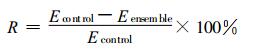 式(1)中, Econtrol和Eensemble分别为控制试验预报和集合平均预报的热带气旋位置距离误差。显然, R越大越好, R越大, 表明集合预报相对于控制试验的改进越多, 反之, 如果技巧水平为负技巧, 即R小于0, 表明集合预报结果不如控制试验。