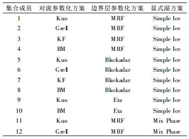 表 2 试验B(MPP)12个集合成员的构成 Table 2 The formation of the 12 ensemble members of test B(MPP) |