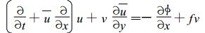 对式 (5) 作 (∂/∂t+u∂/∂u) 运算, 对式 (3) 作 (∂u/∂y)(∂2/∂x∂y) 运算, 合并可得: