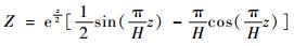U0为维向基本气流速度的特征值; L为切变纬向气流的经向宽度; 由于可以认为发达阶段的切变风场主要成分是前期加热场作用的结果。将这个阶段风的铅直分布函数取为: