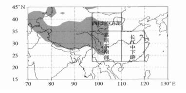 选取22.5°~35°N, 97.5°~110°E作为高原东南部 (主要包括四川、云南两省); 选取22.5°~35°N, 110°~120°E作为长江中下游; 选取35°~42.5°N, 97.5°~110°E作为我国西北地区东部 (如图 1所示)