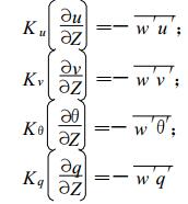 垂直扩散的下边界条件由地表动量通量、地表热量通量和地表水汽通量提供, 它们分别是: