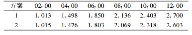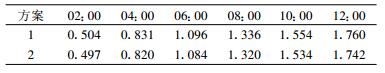 实际上, 切线性扰动应该和包括全物理过程的非线性模式中的扰动保持一致, 因为包括全物理过程的非线性模式才是实际大气正确的描述。当非线性模式包括全物理过程 (辐射过程、边界层过程、对流参数化过程等) 时, 只包括动力框架的切线性模式中的扰动和非线性扰动的偏差明显增大 (表 3~6中方案1的结果与图 1的结果对比)。总的来说, 垂直扩散方案对模式计算结果的影响较小, 但是本文修改后的切线性垂直扩散方案使得切线性扰动和非线性扰动的平均偏差在所有变量和不同时刻上都一致降低 (只有表 6中2 h的结果升高非常小的0.2%), 其中气压场和风场的平均偏差降低了1%左右, 湿度场则能够达到3.5%左右。