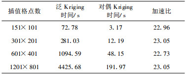 表 3 对偶Kriging与泛Kriging的计算效率对比 Table 3 The comparision of the efficiency between Dual Kriging method and Universal Kriging method |