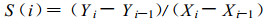 式 (2) 中, Xi-Xi-1是自记图纸上的时间间隔, Yi-Yi-1是在此时间间隔内自记曲线所代表的风的行程。