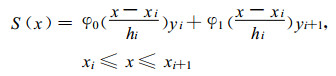 式 (3) 中, hi=xi+1-xi, 而φ0(x)=1-x, φ1(x)=x, (xi, yi) 为采样点[15], i是曲线沿x轴方向的采样点序号, xi≤x≤xi+1是指当自变量x取值为区间 (xi, xi+1) 上的值时, 得到两个采样点之间的曲线值S(x)。
