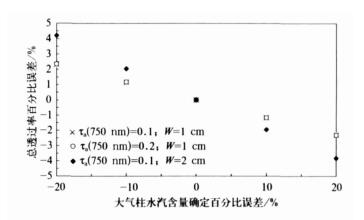 | 图 6. 大气柱水汽含量确定误差的效应 Fig 6. Relative error of global transmittance versus the error of column water vapor content | |