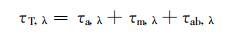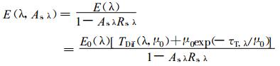 式 (1) 中, E0(λ) 为大气顶λ波长太阳辐照度, As, λ为λ波长地表反射率, E(λ) 为无地表反射 (As, λ=0) 时太阳辐照度, τT, λ为λ波长大气柱总光学厚度, TDif为As, λ=0时λ波长大气漫射透过率, Rs, λ为大气的半球反射率函数。对无云的大气, 大气总光学厚度由气溶胶、分子散射和吸收光学厚度组成, 分别表示为τa, λ, τm, λ和τab, λ, 即