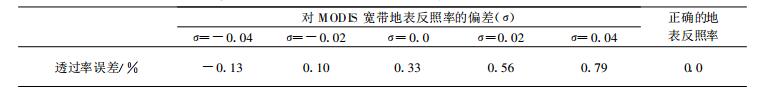 表 1 由地表反照率误差所导致的总透过率计算误差 Table 1 The global transmittance errors caused by different surface albedo errors |
