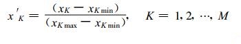 式 (2) 中, K表示格点数, xK为样本的原因子数据, x′K为标准化后对应的因子数值, xKmax, xKmin分别为所有历史样本中原因子数据的最大和最小值。