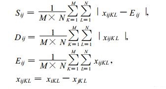 式 (1) 中, M为所计算的相似场的格点数 (或测站数), N为因子数, 对应的K, L分别为格点、因子序号。Cij为第i、第j两个样本的相似离度, N=1时, 为单因子相似, 否则为多因子相似离度。x为相似因子。Eij为第i样本对第j样本中所有因子和格点之间的总平均差值。Dij为值系数, 反映了样本之间在总平均数值上的差异程度; Sij为形系数, 反映了两个样本中的各个因子和格点之间的差值xijKL对Eij的离散程度。α, β分别为它们对总相似程度的贡献系数。