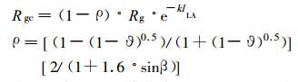 式 (14) 中, Rgc是作物生长状况下到达地面的辐射量, ρ为冠层反射率, Rg为到达作物冠层顶部的辐射量, 可认为与空温室中到达地面辐射量相同, k为作物消光系数, 取值为0.43, ILA为叶面积指数, 为单叶的散射系数, 取值为0.2, β为太阳高度角。