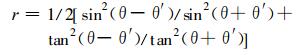 式 (3) 中, r为透明覆盖材料对太阳辐射的反射比, 根据Fresnel公式, 计算如下:
