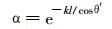 式 (3) 中, α为内透射比, 即太阳辐射在材料内部前进时被吸收的比率, 按照Lambeert-Bouguer定律, 其表达式为: