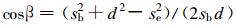 其中, n=int (d)。令α=∠COA, 利用三角余弦公式有: