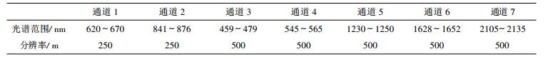 表 3 MODIS通道光谱范围 Table 3 Band spectral range of MODIS |