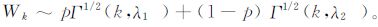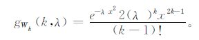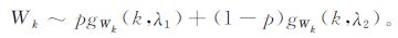 式 (2) 中, p为比例系数, λ1和λ2分别为丛集区域和背景区域的分布参数, k为距离阶数[15-20]。结合式 (1) 和式 (2), 它们的Wk服从以下分布: