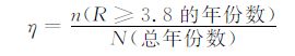 3.2.2 有效率的计算方法以3.8为临界值, 统计出大于等于3.8的年份, 记为n, 总年份记为N, 其比值定义为极端气候事件的有效率, 记为η。具体计算公式为: