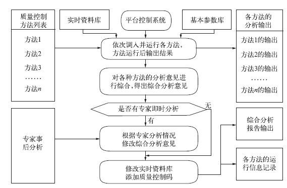 2 实时质量控制方法的应用设计在同一个质量控制平台中可以采用并运行多种质量控制方法,每一个质量控制方法可以是一个综合性的质量控制模块,也可以是针对某一方面的质量控制模块,或是采用某一单项技术的质量控制模块。为了避免各种质量控制方法在分析中的重复,需要将各种质量控制方法进行合理组织,以达到最佳的质量控制效果。具体方法如下: