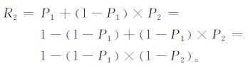 根据式 (2) 可知,1-R2=(1-P1)×(1-P2),所以,