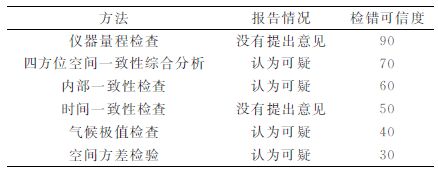 表 1 质量控制方法及气象要素检错可信度 (单位:%) Table 1 The method of quality control and error detection reliability of meteorological elements (unit:%) |