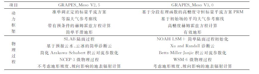 表 1 GRAPES_Meso V 2.5与V3.0模式主要差别 Table 1 The differences between GRAPES_Meso V2.5 and V3.0 models |