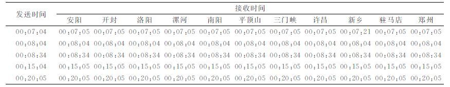 表 3 河南省常规气象资料发送、接收时间 Table 3 The delivered and received time of general meteorological data in Henan Province |