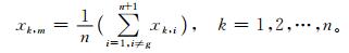 式 (1) 中, i为顶点索引号,k为函数中变量的索引号,m为中点索引号,g为最大函数值所在点的索引号。从最大函数值的坐标点G至中点M的方向向量可以表示为