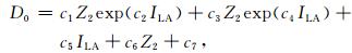式 (11) 和 (12) 中, c1, …, c7和b1, …, b7分别代表拟合D0和Rd变化曲线的经验公式中的系数。利用式 (4) 和改进的NMS算法,可以确定这些系数 (具体数值略),从而可以得到D0和Rd计算的经验公式。再通过拟合的经验公式,可以绘制如图 2中所示的拟合曲线,由图 2中的光滑曲线表示。