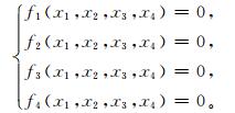 当δ1=δ2=δ3=δ4=0时,以上函数达到最小值零,此时的解也是式 (5) 的解。也就是说,求解方程组 (5) 可以转换成计算函数式 (6) 的极值。这样,就可以使用NMS算法求解非线性方程组。