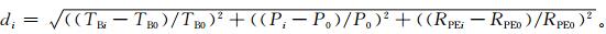 生命地带的具体气候指标是生物温度、降水与潜在蒸散率,甘南草原的平均生物温度在4.1~5.2℃之间,平均降水量在450.3~601.4 mm之间,平均潜在蒸散率在0.41~0.71之间,根据修正的Holdridge分类系统,甘南草原目前属于青藏高原高寒植被地区的亚高山高寒草甸生命地带。为了分析甘南草原Holdridge生命地带偏移趋势,采用距离分析的方法,设计了公式: