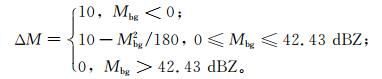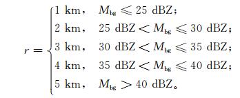 式 (1) 中,Mbg为背景平均反射率因子。然后确定对流中心的影响半径r,其大小会随着背景平均反射率因子而改变。