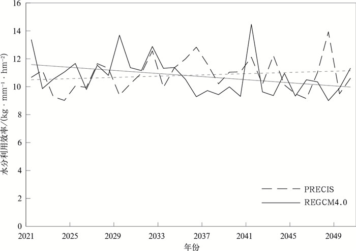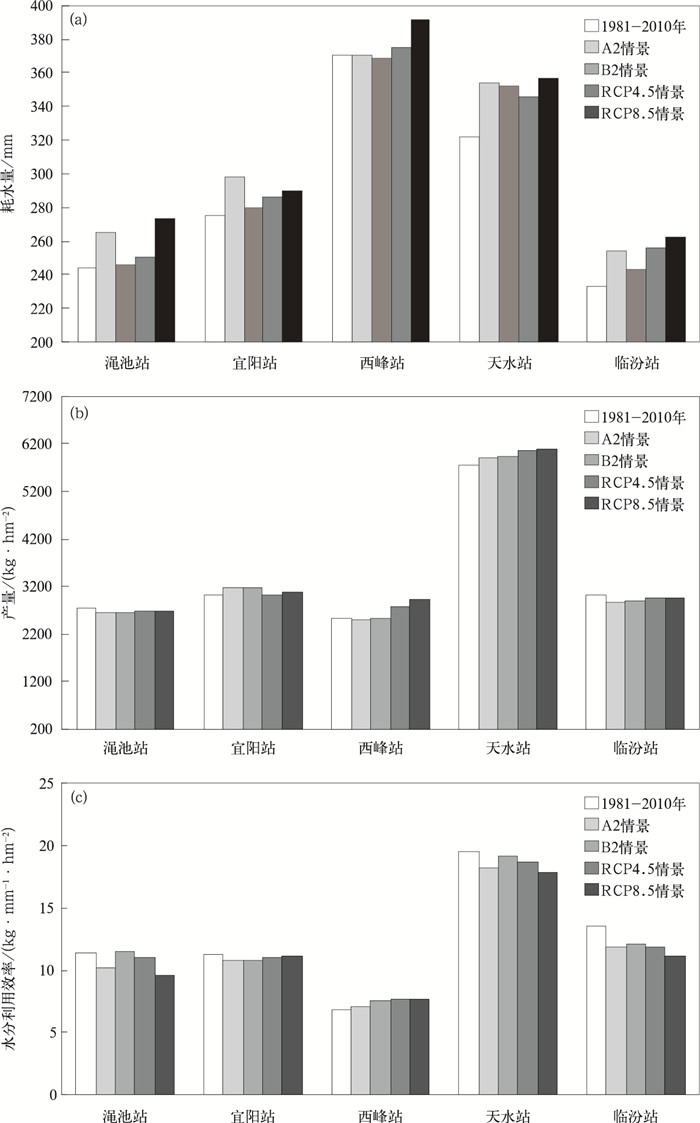 2) 两种区域气候模式、4种气候变化情景的估算结果均表明:2021—2050年气候变化导致雨养麦区耗水量增加,水分利用效率进一步降低,未来耗水量的增加是水分利用效率减小的主要原因,同时,水分利用效率的变异系数减小。