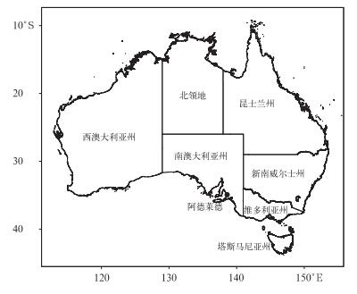 1 研究区和数据 1.1 研究区研究区为澳大利亚阿德莱德中心城区 (图 1),一条东西横贯的北台街 (North Terrace) 将市区划分为南北二区,北区多为住宅区,南区多为商业区。2014年阿德莱德城市人口为130万,面积为2000 km2。阿德莱德拥有地中海式气候,冬天潮湿寒冷,夏天干燥炎热,夏天平均最高气温约为28℃,冬天气温则降至约15℃,年平均气温为17.1℃。