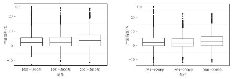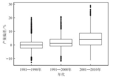 | 图 6. 产量偏差年代际分布特征 Fig 6. Characteristics of yield bias among different decades | |