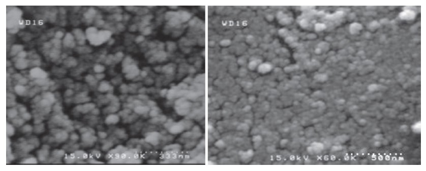 | Fig. 1.ESEM image of the CuO-CeO2 nanocomposite catalyst at two different magnifications. | |