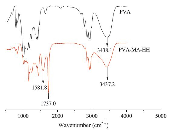 The porous structure of PVA and PVA-MA-HH can be observed in the scanning electron microscopy (Fig. 1). But compared with PVA,PVA-MA-HH surface was more rough, which could be explained by the graft polymers and modified function groups.
