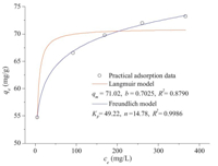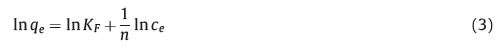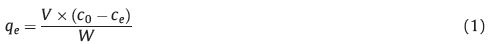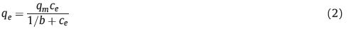 where qe is the equilibrium adsorption capacity (mg/g),ce is the