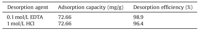 EDTA and 1 mol/L HCl solution could desorb Cu2+ from PVA-MAHH