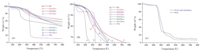 The thermal decomposition behaviors of the GO-CDs and one PVA-based nanocomposite as a typical example are shown in Fig. 4. Aftermodification,the degrees of substitution of CDs onGO-CDs are approximately 5.9,7.6,7.5,7.9,8.1,and 9.9%,respectively,from 70℃ to 120℃ by analyzingthe TGAcurves. It canbe seenthat all the GO-CDs have excellent thermal stability,and the thermal stability of the corresponding nanocomposites after filling with as little as 1 wt. % of the hybrid is higher than that of the pure polymer. Specifically, an about 30% of large weight loss with an onset temperature at 220℃ could be observed for GO,which can be due to the removal of water molecules absorbed and the oxygen-contained functional groups on GO. In contrast,there is nearly no weight loss before 220℃ for GO-CDs,suggesting the introduction of CDs significantly elevates the thermal stability ofGO-CDs due to the strong inter- and intra-molecular interactions [9].