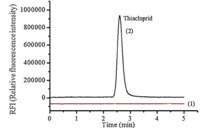 Under the optimized experimental conditions typical chromatograms of a standard solution are shown in Fig. 2. It was found that without UV there was no signal and with UV there was a sharp peak due to photoactivation of the pesticide. The interference of foreign species was studied by injecting the standard solution of thiacloprid containing known amounts of selected interfering compounds (6-chloronicotinic acid,methomyl,phenoxim and triadimefon) into the chromatographic system. It was found that there was no interference from the tested foreign species for the separation on the IC column.