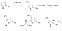 In summary,a simple and straightforward approach for the synthesis of 2-azido-4-nitroimidazole (ANI) has been devised. Its salts,which can be easily synthesized and safely handled, exhibited promising physical properties,such as high nitrogen content,and high positive heats of formation. The densities of these salts were within the range 1.56–1.78 g/cm3. The detonation velocities and detonation pressures of salts 1 and 3 were higher than that of TNT. All of the energetic salts examined herein showed moderate performance and high nitrogen content and, hence,may have potential applications in gas generators and pyrotechnics.