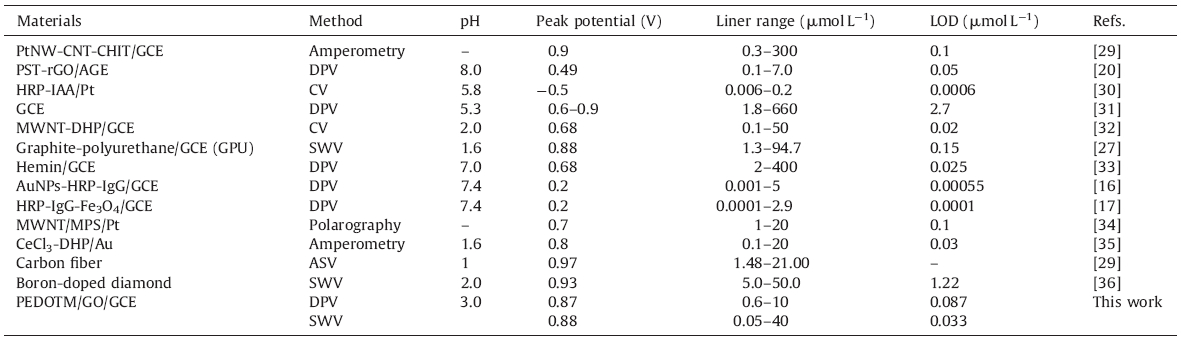 | Table 1 Comparison of analytical performance of different electrodes for the electrochemical detection of IAA. |