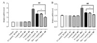 | Fig. 3. Effects of 1a and 8d on glucocorticoid receptor (GR)-mediated gluconeogenesis. HepG2 cells were grown in 6-well plates and incubated with various compounds for 24 h. Total RNA was isolated with TRIzol reagent. (A) Phosphoenolpyruvate carboxykinase (PEPCK) and (B) glucose-6-phosphatase (G6Pase) mRNA levels in HepG2 cells were quantified by real-time RT-PCR. GAPDH was used as an internal control. Dexamethasone (Dex) at 0.01 mmol/L could increase the expression of PEPCK and G6Pase,both were rate-controlling enzymes of gluconeogenesis. As antagonists of human GRa,1a and 8d were able to reduce Dex-induced transcription,and the effect of 3 mmol/L 8d was statistically better than that of 1a at the same concentration. ##P < 0.01 compared with 0.1 mmol/L Dex-treated cells; *P < 0.05 compared with 0.1 mmol/L Dex plus 3 mmol/L 1a. Data (means ± SEM) are representative of three independent experiments. | |