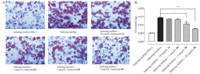 | Fig. 4. Effects of 1a and 8d on differentiation of 3T3-L1 preadipocytes. 3T3-L1 cells were grown in 6-well plates and allowed to reach confluence. Various concentrations of 1a and 8d were added into the medium and incubated for 1 h. Differentiation was induced by changing medium to the inducing medium containing 10% FBS,0.5 mmol/L IBMX, 1 mg/mL insulin,0.3 mmol/L dexamethasone (Dex) and human GRa antagonists (1a or 8d). After two days,the inducing medium were changed to insulin medium and incubated for two more days. At last,cells were cultured in DMEM containing 10% FBS for four days. Following differentiation,(A) cells were stained with Oil Red O and representative images were obtained at 200× original magnification,and (B) triglyceride produced by 3T3-L1 cells was measured,which was normalized by protein content in the cells. *P < 0.05 and **P < 0.01 compared with cells cultured in inducing medium. Data (means ± SEM) are representative of three independent experiments. | |