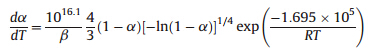 ,according to the unanimity rule of the calculation results from each model equation [22]. So,the kinetic equation of the exothermic decomposition reaction can be
