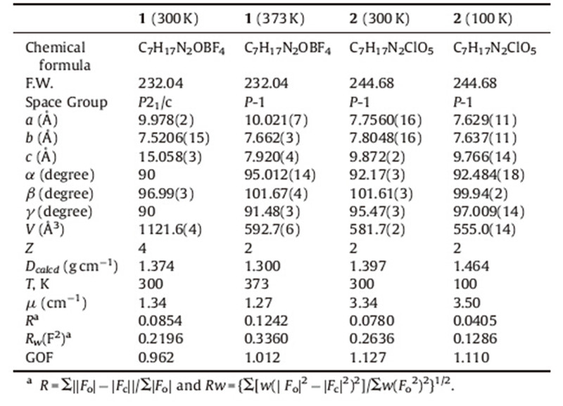| Table 1 Crystal data,data collection,and reduction parameter of crystals 1 and 2. |