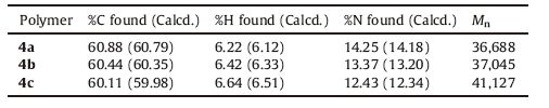 Table 1 Elemental analysis (%) and molecular weight of polymers 4a-4c. |